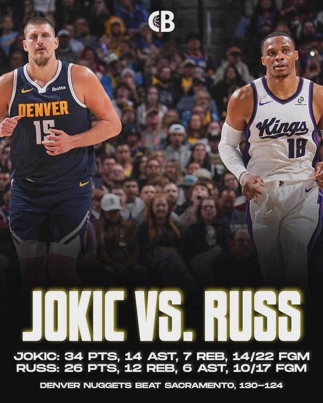 国王124-130不敌掘金,此役威少以首发大前锋身份出战,面对老东家打出本赛季最强一战,约37分钟时间里,投篮17中10,其中三分球6中3,罚球3中3砍下26分12板6助2断炸裂数据。